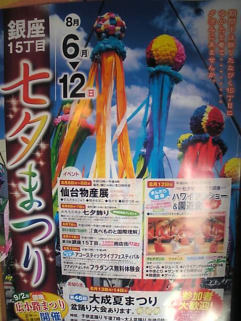 いよいよ今日から銀座七夕祭です(^O^)仙台物産販売など毎日催しが目白押しだぜ!自分も明日は笹カマボコ買いに走りますか~f^_^;